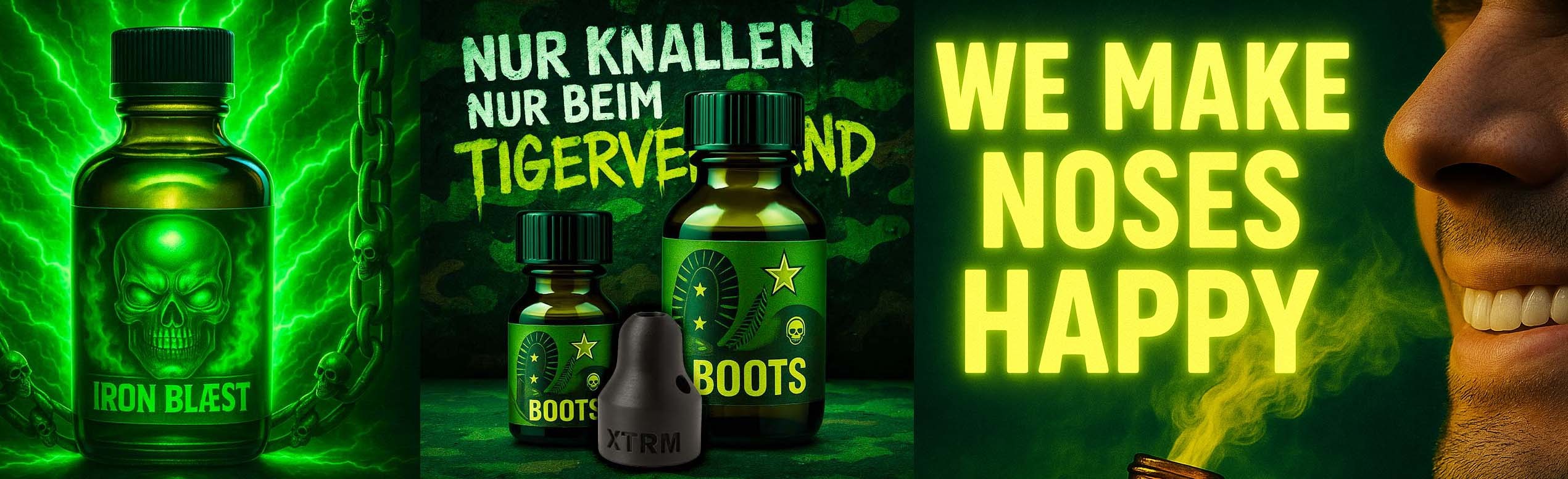 Welkom bij Tigerversand, de stoerste, wildste en meest compromisloze winkel voor Poppers, fetisj-accessoires en alles waar je kinky hart sneller van gaat kloppen. Wij leveren niet - wij schieten. Geen halve maatregelen, gewoon een volle lading voor iedereen die het intens en ongeremd wil. Je nieuwe favoriete winkel voor 246 variëteiten Poppers, een enorm assortiment accessoires en alles om je speelkamer in een tijgerhol te veranderen.